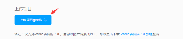 4)點(diǎn)擊“上傳項(xiàng)目(PDF格式)”,(備注:僅支持Word轉(zhuǎn)換的PDF,請(qǐng)勿以圖片轉(zhuǎn)換成PDF,可以點(diǎn)擊下載Word轉(zhuǎn)換成PDF教程查看),上傳項(xiàng)目。
