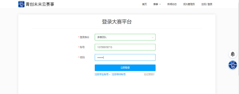 2.1 參賽團(tuán)隊(duì)用戶登錄