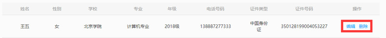 于已經(jīng)添加的信息,可進(jìn)行“編輯”或“刪除”操作。