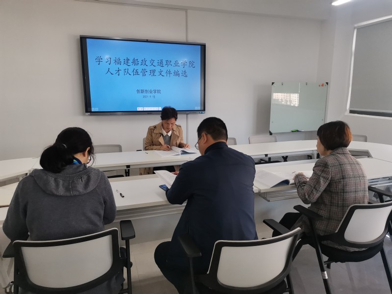 2021915下午,創(chuàng)新創(chuàng)業(yè)學(xué)院全體人員集體學(xué)習(xí)《福建船政交通職業(yè)學(xué)院人才隊(duì)伍管理文件選編》。