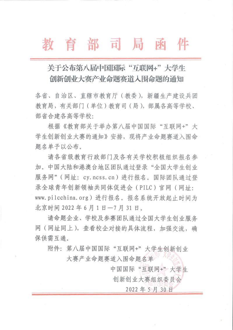 (已壓縮)附件:第八屆中國國際“互聯(lián)網 ”大學生創(chuàng)新創(chuàng)業(yè)大賽產業(yè)命題賽道入圍命題名單.pdf