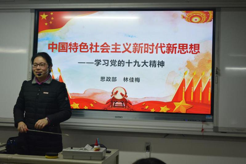講座開始時,林佳梅老師深入淺出、旁征博引,從四個方面為全體學(xué)生做了精彩的宣講報告。她從經(jīng)濟新常態(tài)、意識形態(tài)等領(lǐng)域,總結(jié)了十八大的成就,幫助大家進(jìn)一步認(rèn)清了十九大召開的時代背景,概括總結(jié)了近年來國家經(jīng)濟型社會發(fā)展取得的輝煌成就,深入分析了當(dāng)前社會發(fā)展面臨的重要機遇,深刻闡述了如何堅定理想信念、樹立“四個自信”,使學(xué)生們?yōu)閲业目焖侔l(fā)展而自豪。林佳梅老師還告訴我們,黨的十九大會議,是在全面建成小康社會決勝階段、中國特色社會主義發(fā)展關(guān)鍵時期召開的一次十分重要的大會。它承擔(dān)著謀劃決策、全面建成小康社會、深入推進(jìn)社會主義現(xiàn)代化建設(shè)的重大任務(wù),它的召開關(guān)系著黨和國家事業(yè)能否蒸蒸日上,關(guān)系著中國特色社會主義前途命運,關(guān)系著廣大人民最根本的利益,而這些內(nèi)容正是與我們的生活所息息相關(guān)的。