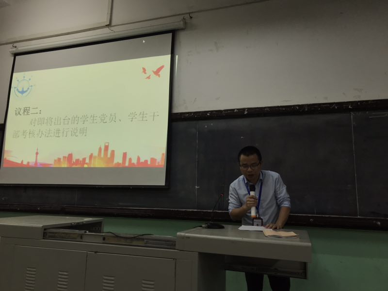 輔導(dǎo)員代表林森茂老師就即將出臺的學(xué)生黨員、學(xué)生干部考核辦法進(jìn)行詳細(xì)解讀。
