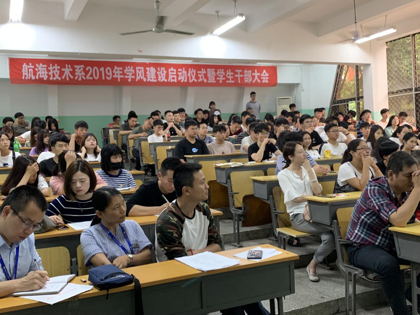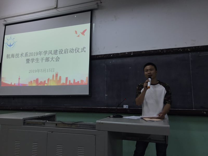 為深入學(xué)習(xí)貫徹落實習(xí)近平新時代中國特色社會主義思想和黨的十九大精神,切實加強(qiáng)學(xué)風(fēng)建設(shè),促進(jìn)學(xué)生學(xué)習(xí)與發(fā)展,5月15日下午兩點,航海技術(shù)系在南區(qū)航東大舉行2019年學(xué)風(fēng)建設(shè)啟動儀式暨學(xué)生干部大會。航海技術(shù)系主任江明光教授、副主任翁國玲副教授、團(tuán)總支書記林杰老師、各教研室主任、輔導(dǎo)員、班主任、團(tuán)委、學(xué)生會主要干部、各班班委、各宿舍舍長參加了啟動儀式。團(tuán)總支書記林杰老師主持啟動儀式。
