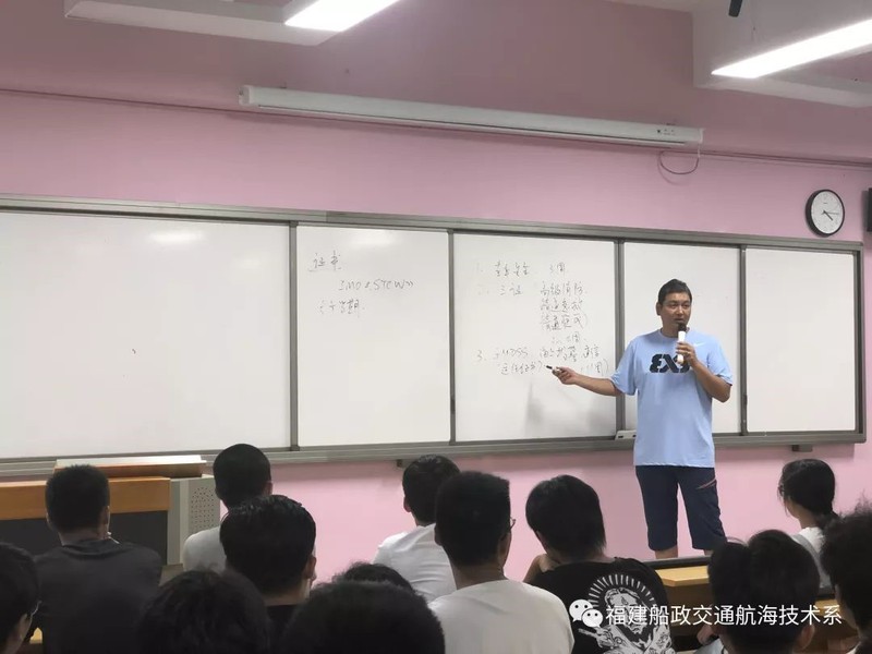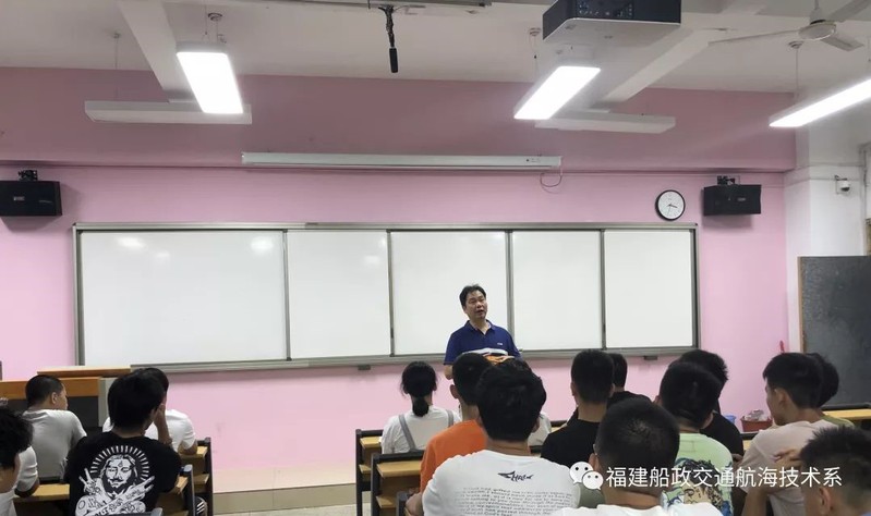 鄭友賦老師則為同學們介紹了本專業(yè)的課程及就業(yè)前景,并通過船舶運輸管理的基本理論知識,點明在未來的學習生活中,同學們將接受船舶操縱、避碰及合理運用各種航圖、導航儀器儀表和GMDSS通信方面的基本訓練,以及消防、急救等一些高級船員必備的能力培養(yǎng)。并期望這些系統(tǒng)性的學習,能對同學們未來的生活有所幫助。