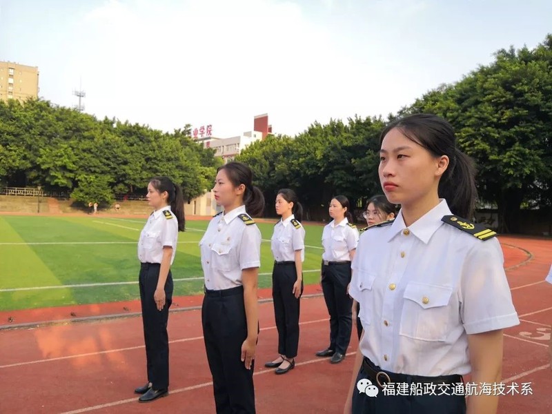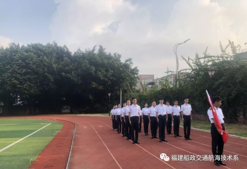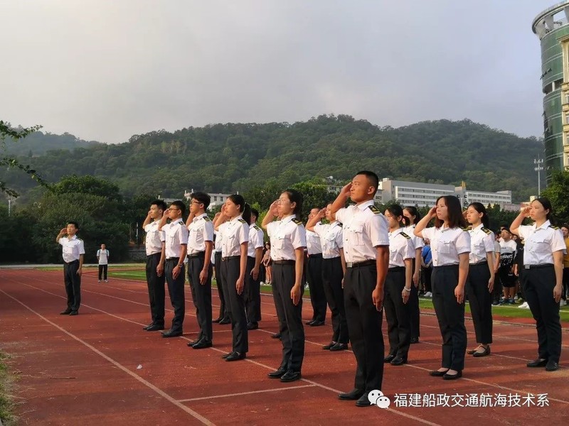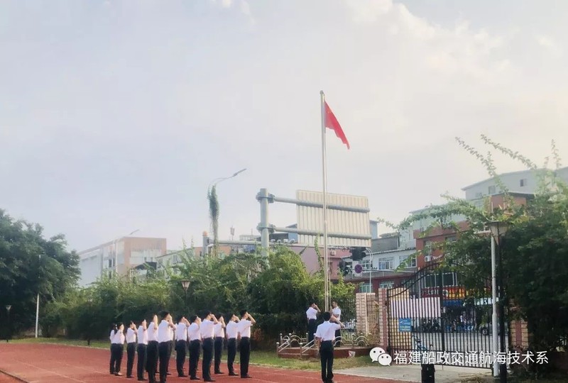 早晨7點,航海技術(shù)系為新生們上了一堂特殊的愛國教育課——升旗儀式。