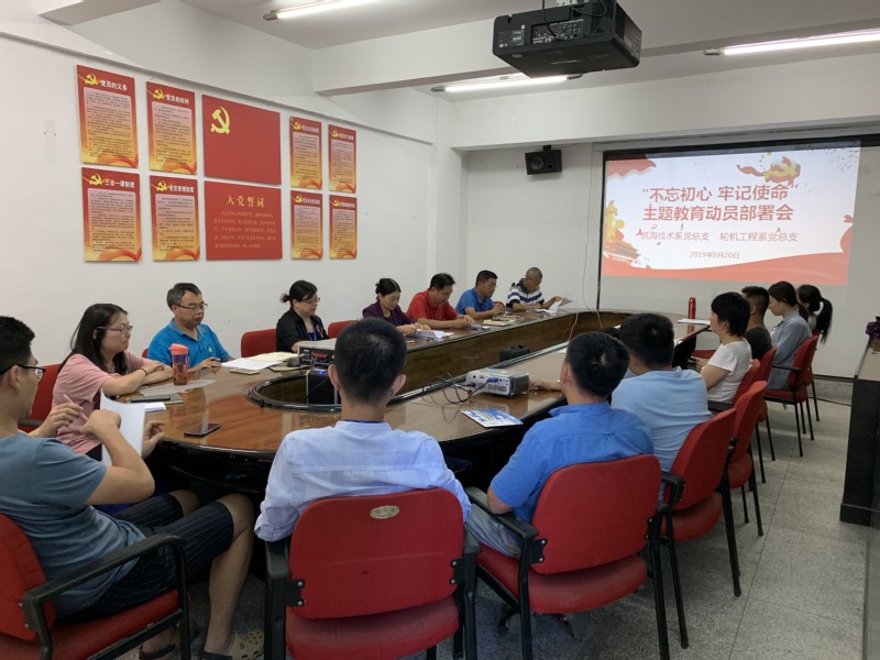 會上,首先由江明光傳達學(xué)習(xí)中央和省委、省委教育工委開展第二批“不忘初心、牢記使命”主題教育部署會議精神,學(xué)習(xí)了學(xué)院黨委《關(guān)于開展“不忘初心、牢記使命”主題教育實施方案》。同時,對照學(xué)院主題教育任務(wù)清單,結(jié)合我系實際從學(xué)習(xí)教育、調(diào)查研究、檢視反思突出問題、整改落實四個方面對系部開展主題教育工作做了具體安排部署。