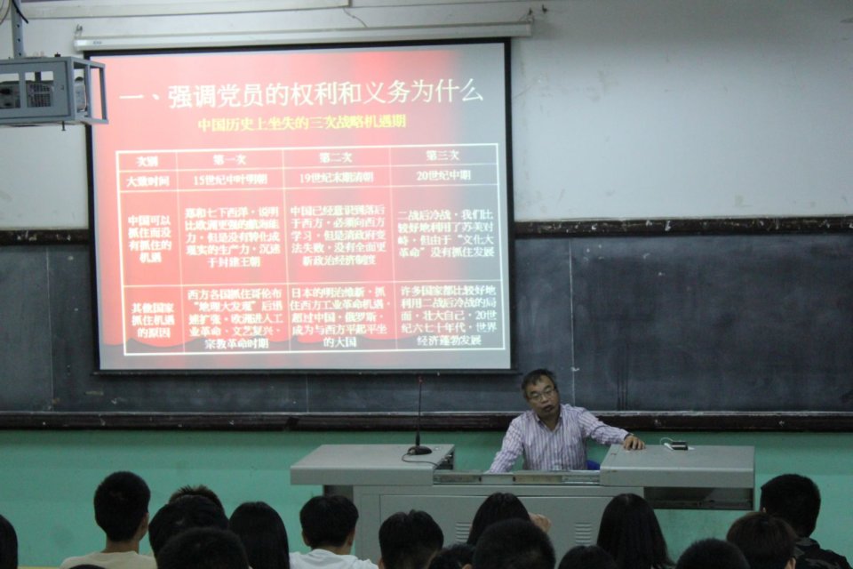 2019年10月17日晚,輪機(jī)工程系主任、黨總支統(tǒng)戰(zhàn)委員兼青年委員陳清彬同志,給2019級(jí)新生上了本學(xué)期的形勢(shì)政策課——新時(shí)期黨員要求。