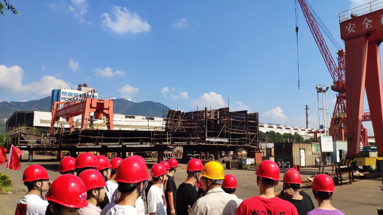 福建東南造船船廠負(fù)責(zé)人首先向同學(xué)們介紹了公司的位置區(qū)域和整體規(guī)劃,船舶制造流程、船體結(jié)構(gòu)。船廠不比寫字樓,工作環(huán)境相對沒有那么舒適,甚至有些辛苦,但每個選擇了這里的人都沒有退縮,勤勤懇懇地在自己的崗位上努力奮斗著,讓大家參觀后感觸很多、很多……?