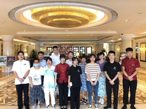 2020年8月7日、8月14日福建船政交通職業(yè)學(xué)院航海學(xué)院副院長李翼、翁國玲、李道科、黨總支副書記朱寶杉、郵輪乘務(wù)教研室主任黃超夷前往福建鯉魚洲酒店、福州西湖大酒店考察郵輪乘務(wù)專業(yè)現(xiàn)代學(xué)徒制學(xué)生實訓(xùn)情況。酒店方熱情接待校方教師,帶領(lǐng)校方教師參觀酒店及實訓(xùn)學(xué)生的工作過程,并在融洽的氣氛下開展了座談會,同學(xué)們暢所欲言,分享工作感悟;校方教師給予肯定及實訓(xùn)適應(yīng)期的心理疏導(dǎo);酒店方積極聽取學(xué)生意見,改進工作條件;同時校企雙方就下一步工作進行深入探討,達成共同推進國際郵輪乘務(wù)專業(yè)學(xué)徒制人才培養(yǎng)質(zhì)量的共識。