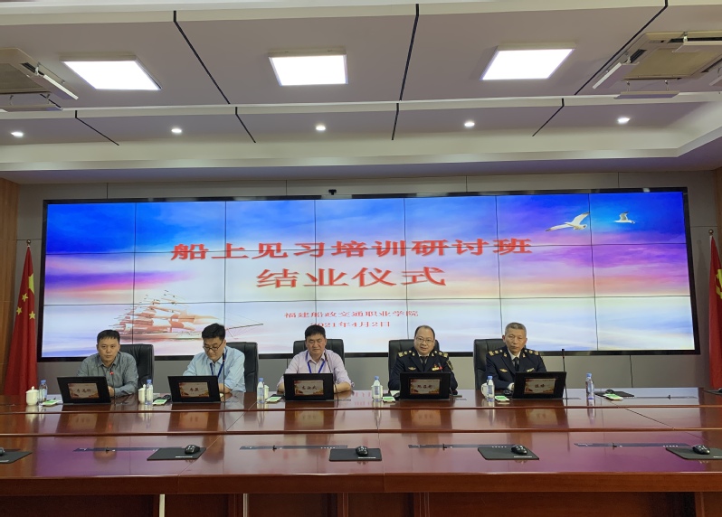 2021年4月2日,船員船上見習(xí)培訓(xùn)業(yè)務(wù)研討班結(jié)業(yè)儀式在福建船政交通職業(yè)學(xué)院舉行。福建船政交通職業(yè)學(xué)院高汝武副院長、航海學(xué)院李翼副院長、李道科副院長、福州海事局阮召彬副局長及相關(guān)業(yè)務(wù)部門領(lǐng)導(dǎo)出席儀式并為學(xué)員頒發(fā)結(jié)業(yè)證書。福州、平潭、寧德等地區(qū)28家航運公司和海員外派機構(gòu)、53名學(xué)員參加結(jié)業(yè)儀式。