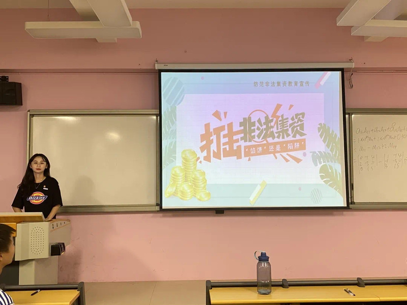 活動(dòng)現(xiàn)場(chǎng)由20級(jí)競(jìng)選助教的組長(zhǎng)演講人員分場(chǎng)為同學(xué)們介紹了什么是非法集資,非法集資的定義,特征、基本類型和常見(jiàn)的手段,及其危害,通過(guò)簡(jiǎn)單有趣的語(yǔ)言為同學(xué)們分析已成功查處并審結(jié)的典型案例,披露非法集資犯罪主體的經(jīng)營(yíng)真相,揭露非法集資的手法伎倆,使學(xué)生們懂得識(shí)別金融風(fēng)險(xiǎn)、從而進(jìn)行自我保護(hù)。航海學(xué)院積極開(kāi)展廣覆蓋、多樣化、深層次的宣傳活動(dòng)。增強(qiáng)學(xué)生們的識(shí)別意識(shí),提高防范、抵御非法集資活動(dòng)的能力,培育其理性投資、風(fēng)險(xiǎn)自擔(dān)的正確概念,自覺(jué)遠(yuǎn)離非法集資的濃厚氛圍,從源頭上抵制非法集資高發(fā)蔓延的勢(shì)頭,有效遏制不法分子的違法犯罪行為。