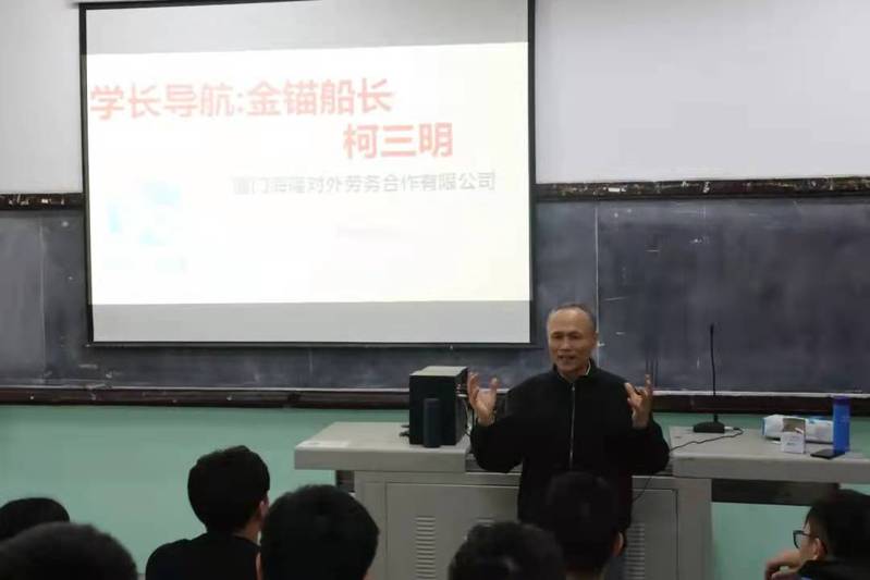 柯三明船長現任廈門海隆對外勞務合作有限公司船管部經理,從事遠洋教學實習船工作10多年,曾在廈門輪總、廣州遠洋、臺塑海運等國內外知名船東做過集裝箱船、散貨船等工作。曾榮獲交通部中國海員工會頒發(fā)的“金錨獎”和廈門輪船總公司頒發(fā)的“個人安全杰出貢獻獎”;多次被福建交通運輸集團、福建海運集團、廈門輪船總公司評為“安全生產先進工作者”。在場學生深受鼓舞,學生們在宣講會上對船員發(fā)展、船員求職就業(yè)等相關問題提出疑問。