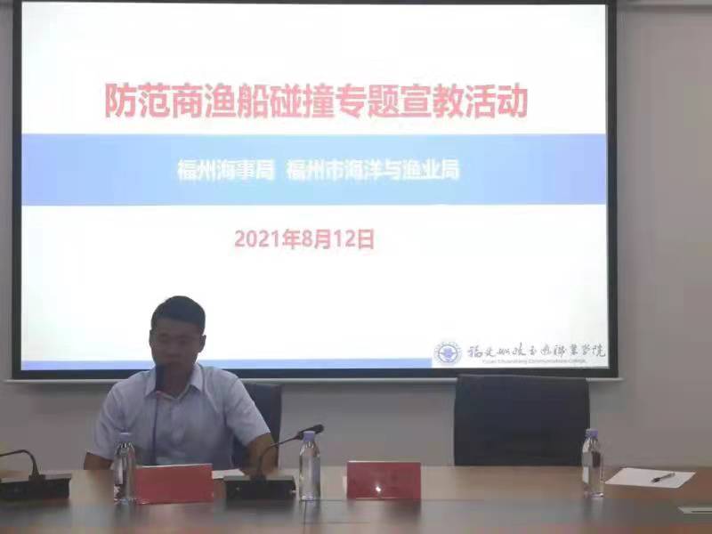 為貫徹落實國務(wù)院安全生產(chǎn)委員會《關(guān)于加強水上運輸和漁業(yè)船舶安全風(fēng)險防控工作》精神,強化落實水上風(fēng)險防控各項措施,有效防范化解商漁船碰撞險情事故,8月12日,福建船政交通職業(yè)學(xué)院航海學(xué)院與福州海事局、福州市海洋與漁業(yè)局聯(lián)合開展了一場防范商漁船碰撞專題宣教活動。