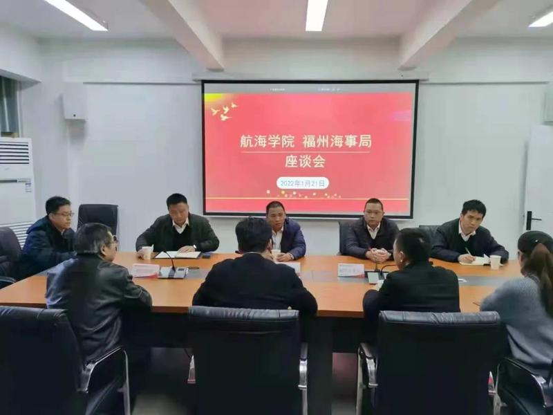 1月21日下午,福州海事局江常鋒副局長、通航管理處陳美偉處長一行就水上交通事故調(diào)查研究基地建設(shè)和海上設(shè)施從業(yè)人員安全培訓(xùn)事宜到我院調(diào)研。航海學(xué)院江文書記、李翼副院長(主持)、李道科副院長率相關(guān)教師代表參加調(diào)研座談會。