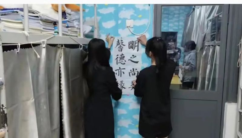 女生宿舍就有些不太一樣了,映入眼簾讓人感覺(jué)到就是一股濃濃的書(shū)香氣息,共同讀書(shū)學(xué)習(xí)知識(shí),練練毛筆提升字體的美觀程度,不得不說(shuō),女同學(xué)們?cè)诜庑F陂g也很努力的在學(xué)習(xí)上“卷”了“卷”。