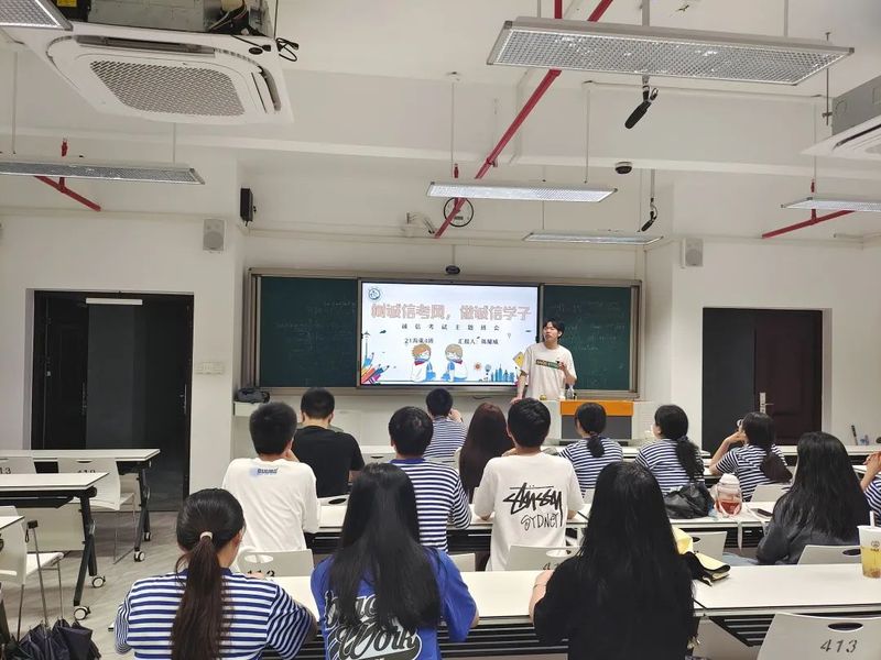 以主題班會為核心,提前做好宣傳教育。誠信是中華民族的傳統美德,誠信考試是立德樹人的重要內容。各班級利用主題班會、專題活動開展考風、考紀及誠信教育活動,開展誠信考試活動進行警示教育,組織學生學習學院考試相關的規(guī)章制度,引導學生遵章守紀,杜絕考試舞弊行為。