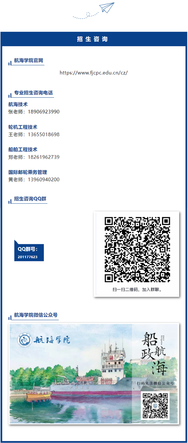 航海學院擁有大型航海、輪機模擬器實訓中心、船舶智能制造科技艙、海洋航行器創(chuàng)新研究工坊、“中式郵輪?五高”訓練中心等各類校內(nèi)外實訓基地45個。校企共建國家級生產(chǎn)性實訓基地1個,全國首批“大思政課”實踐教學基地1個,國家級航??破战逃?/span>2個,省級產(chǎn)教融合A類示范基地1個,省級虛擬仿真實訓基地1個,福建省高校中華優(yōu)秀傳統(tǒng)文化傳承基地1個,第四批“福建省科技館分館”1個。航海學院重視學生素質(zhì)培養(yǎng),實行半軍事化管理,創(chuàng)設(shè)生態(tài)化課堂“槳板隊”“龍舟隊”“心理團輔”,營造泛在化學習氛圍。堅持課賽結(jié)合,以賽促學,獲全國職業(yè)院校技能大賽二等獎、“挑戰(zhàn)杯”中國大學生創(chuàng)業(yè)計劃競賽三等獎,“互聯(lián)網(wǎng)+”大學生創(chuàng)新創(chuàng)業(yè)大賽金獎,學生社團“心瀾船社”是福建省“五一先鋒號”,著力于福船非遺技藝的傳承與創(chuàng)新,其制作的船模作為國禮贈予巴拿馬駐華使館。