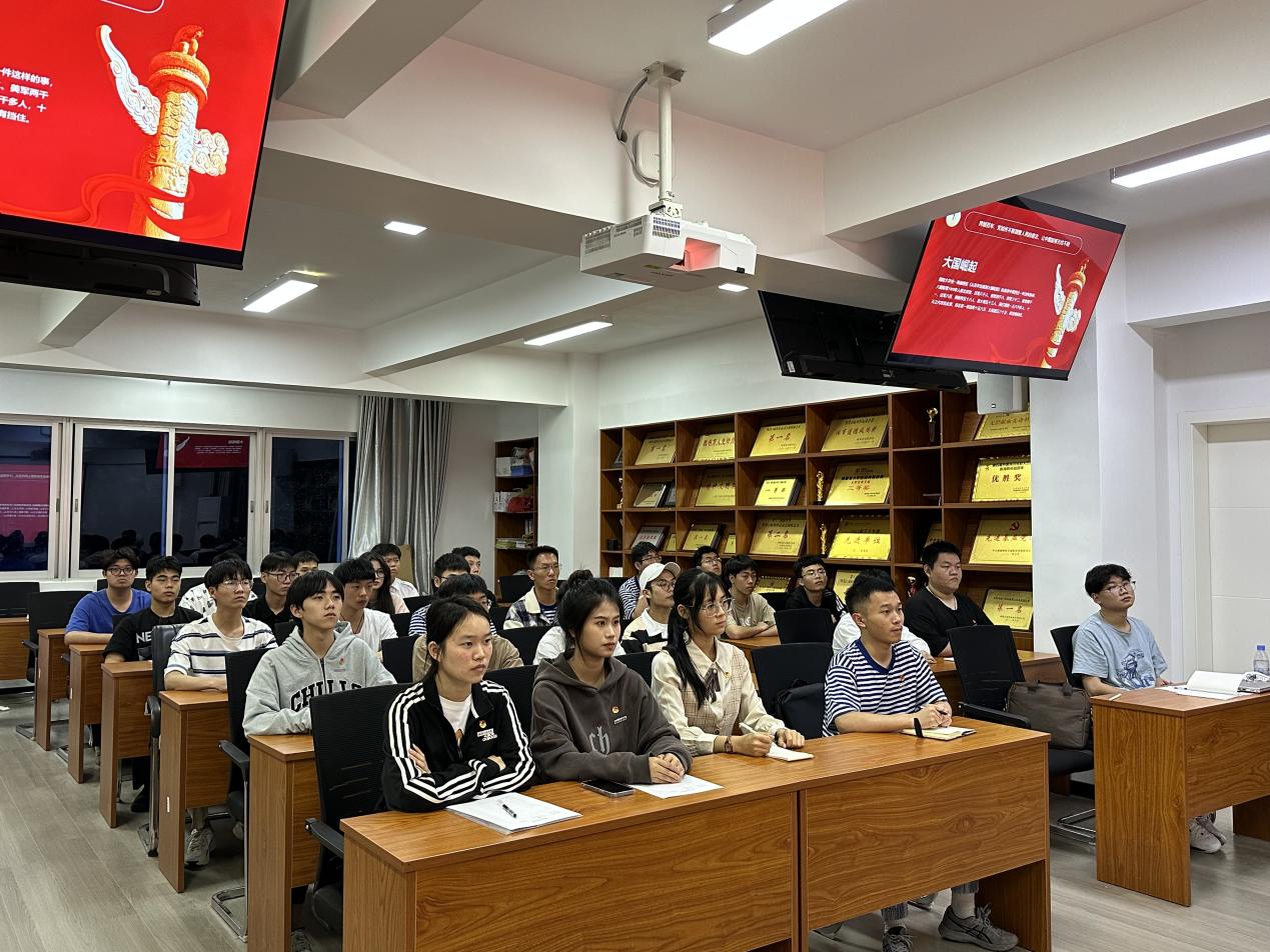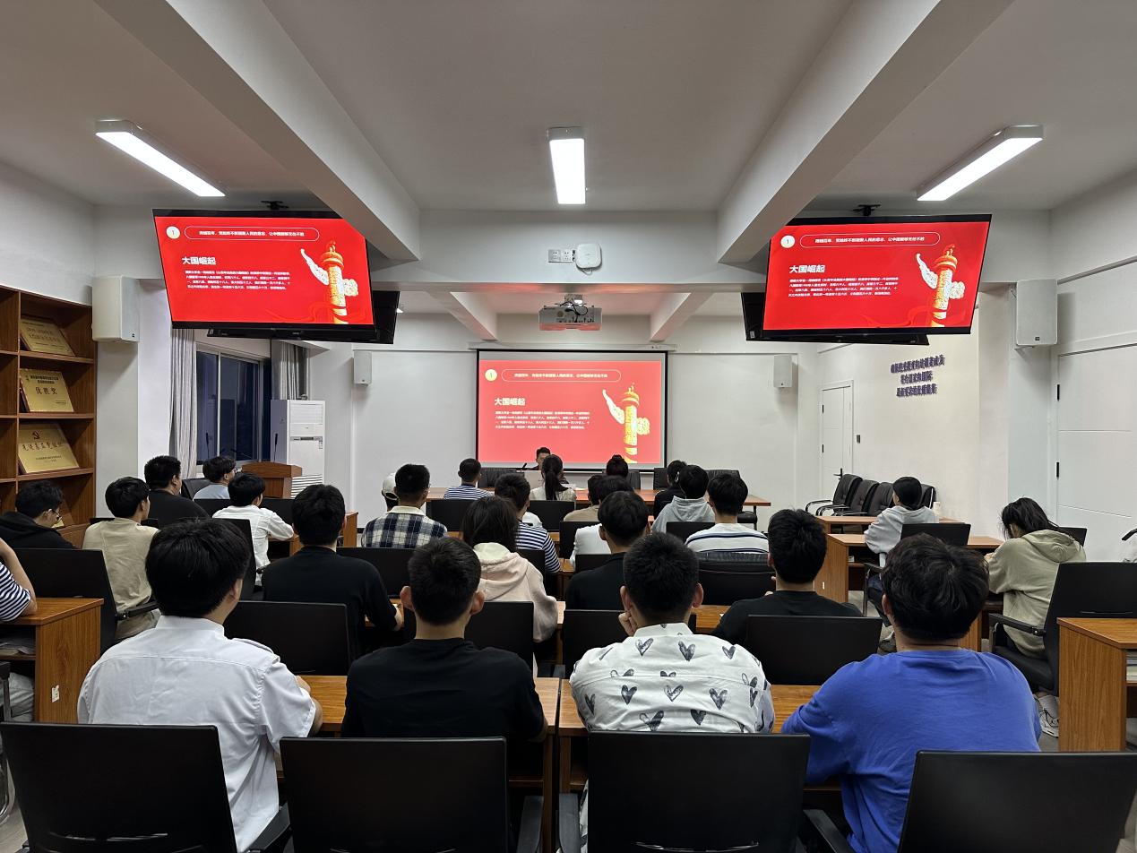 輔導(dǎo)員陳庚森以《感悟百年-黨史蘊含的真力量》為主題,為與會人員上了一堂專題黨課。