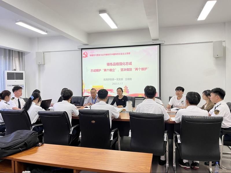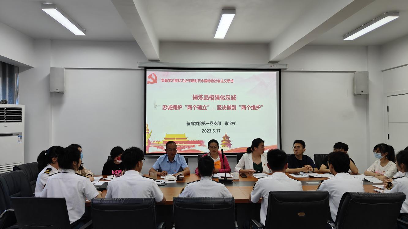 航海學院第一黨支部于2023年5月17日在校友樓307召開主題教育學習,研討專題-錘煉品格強化忠誠——忠誠擁護“兩個確立”,堅決做到“兩個維護”,專題主要發(fā)言人為支部書記王曉艷和支部委員朱寶杉。