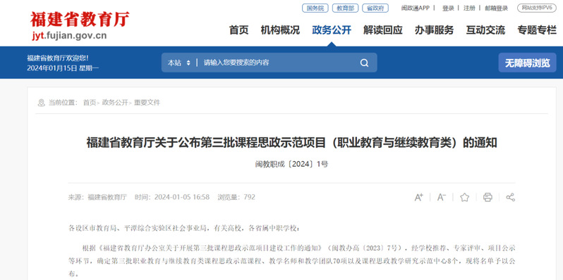 近日,福建省教育廳公布第三批課程思政示范項(xiàng)目(職業(yè)教育與繼續(xù)教育類)名單,我院《國(guó)際游輪商品零售服務(wù)》1門課程獲批省級(jí)課程思政示范課程。