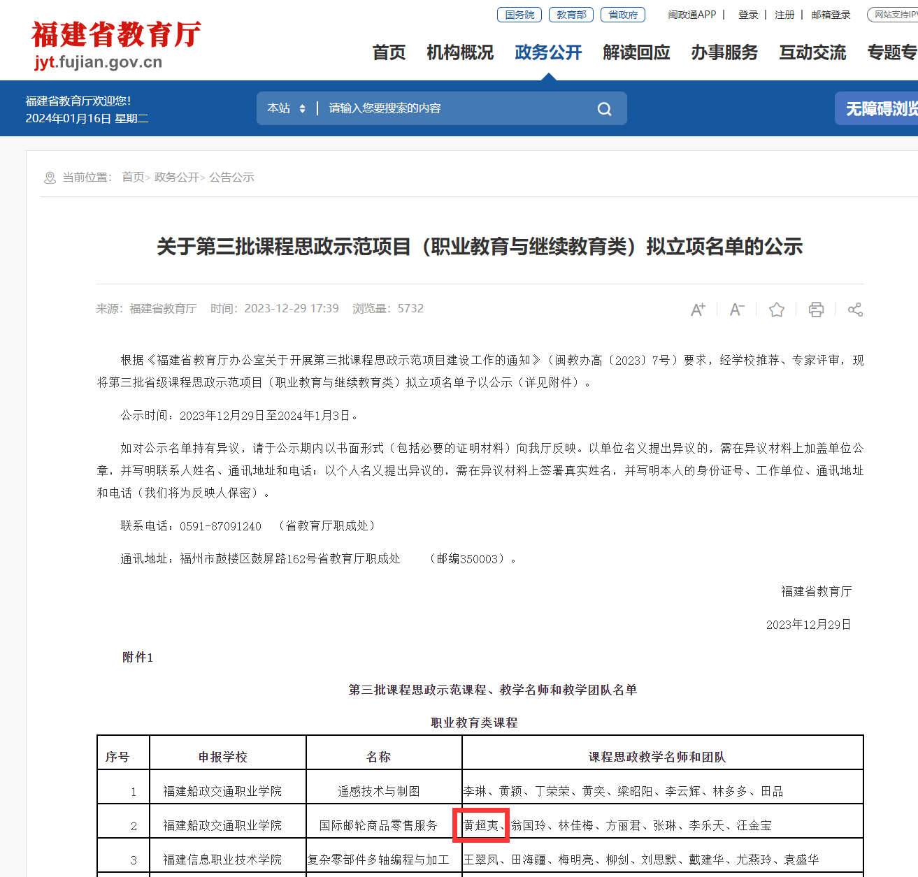 近日,福建省教育廳公布第三批課程思政示范項目(職業(yè)教育與繼續(xù)教育類)名單,由航海技術(shù)專業(yè)群骨干教師黃超夷主持的《國際游輪商品零售服務(wù)》課程獲批省級課程思政示范課程。