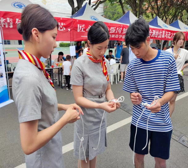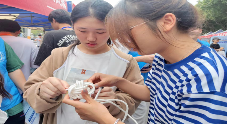 在活動(dòng)現(xiàn)場,我院學(xué)子積極向大家展示繩結(jié)教學(xué),講解各種繩結(jié)的編法以及用處,真正做到了知行合一,學(xué)有所用。