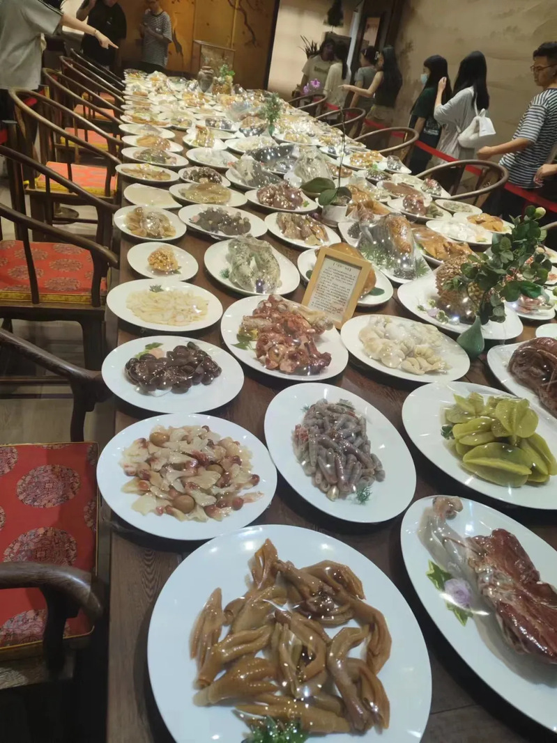 在宣講員的講解下,同學們了解了壽山石雕豐富多樣的技法,精湛圓熟。參觀了“大世界吉尼斯之最”的滿漢全席,感受到孫老師為讓藝術(shù)貼近生活,突破傳統(tǒng)的雕刻素材做出的創(chuàng)新傳承。