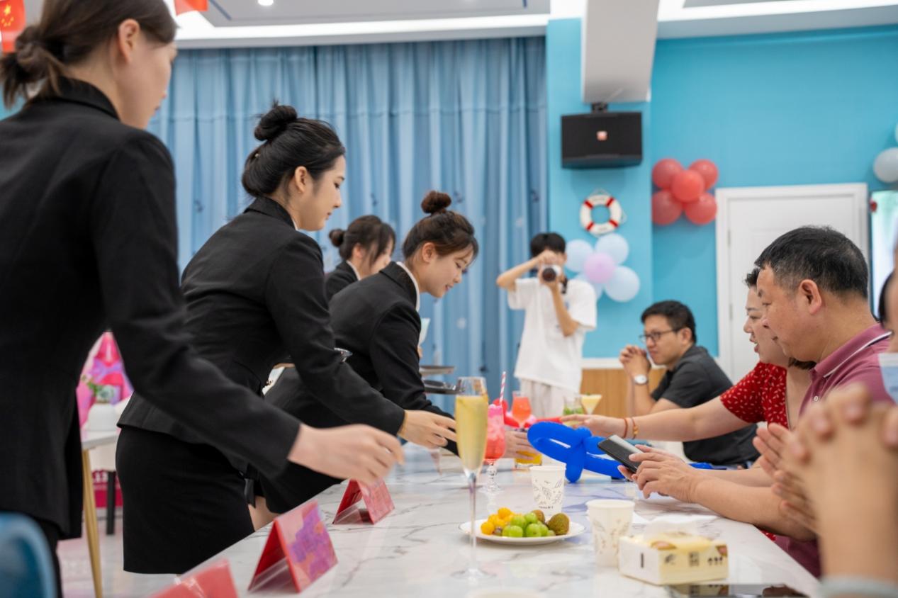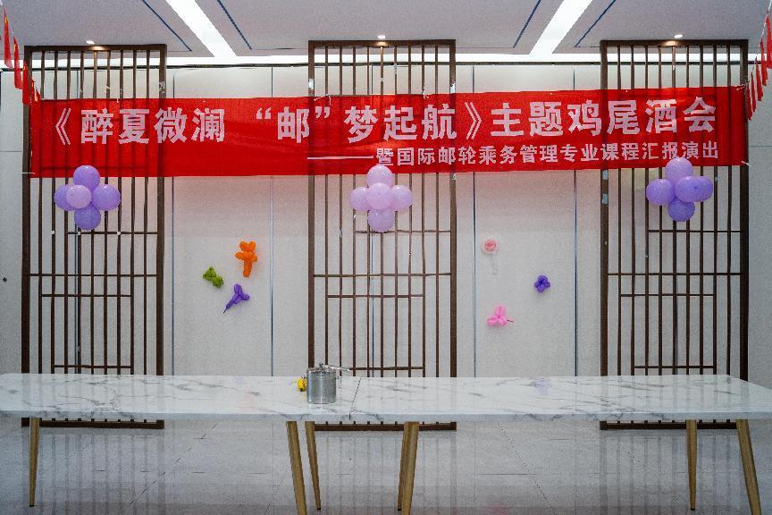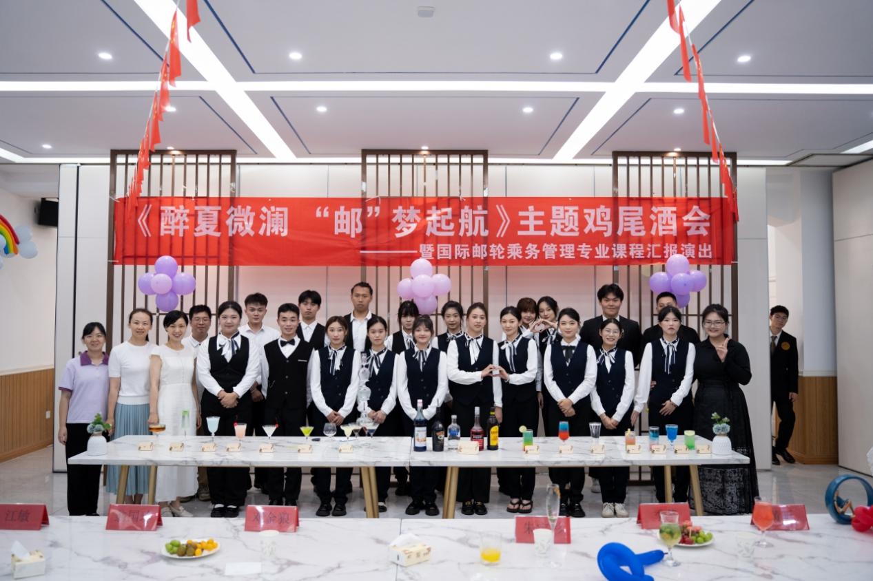 為展現(xiàn)國(guó)際郵輪乘務(wù)管理專(zhuān)業(yè)學(xué)子的風(fēng)采與才華,2024年6月13日,航海學(xué)院特此舉辦“醉夏微瀾,‘郵’夢(mèng)啟航”主題雞尾酒會(huì)活動(dòng)。教務(wù)處副處長(zhǎng)鄧金狼,空中乘務(wù)專(zhuān)業(yè)教研室主任江敏,軌道交通學(xué)院副院長(zhǎng)季芳,航海學(xué)院副院長(zhǎng)翁國(guó)玲,航海學(xué)院副書(shū)記朱寶杉,航海學(xué)院國(guó)際郵輪乘務(wù)管理專(zhuān)業(yè)教研室主任黃超夷,企業(yè)酒水專(zhuān)家、專(zhuān)業(yè)酒水品鑒課程特聘教師黃昕以及各專(zhuān)業(yè)老師、國(guó)際郵輪乘務(wù)管理專(zhuān)業(yè)學(xué)生參加本次活動(dòng)。