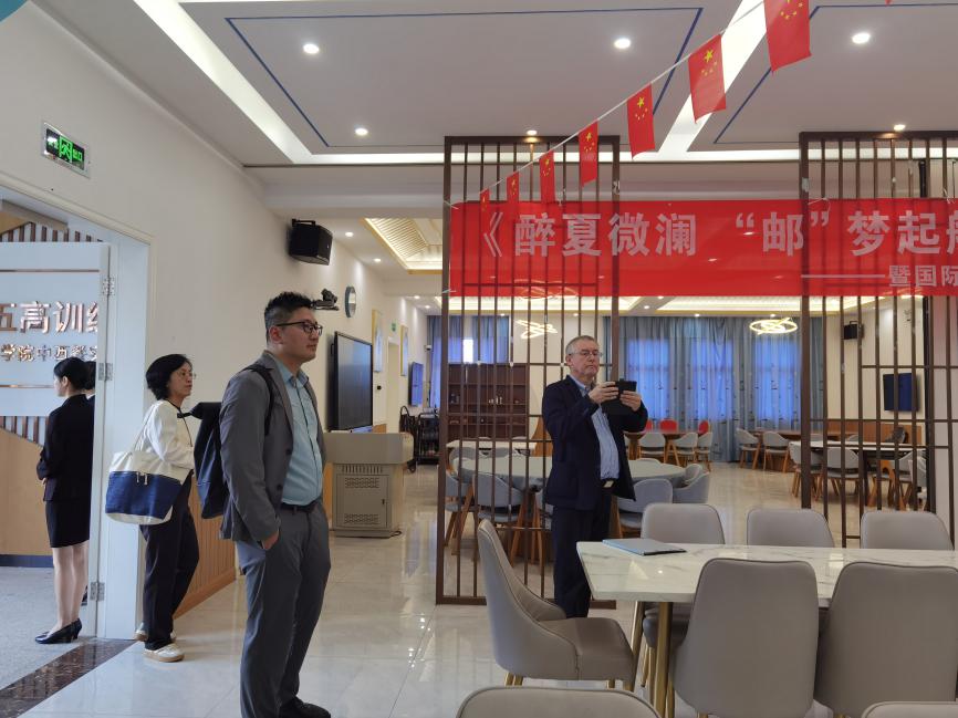 貝雷先生首先分別參觀了郵輪五高一期的中西餐實(shí)訓(xùn)室和二期的郵輪零售、郵輪客艙、中式茶藝實(shí)訓(xùn)室。在中西餐實(shí)訓(xùn)室中,先進(jìn)的烹飪設(shè)備和精致的餐具擺放,展示出專業(yè)的教學(xué)環(huán)境;郵輪零售實(shí)訓(xùn)室模擬真實(shí)的購物場景,讓學(xué)生提前感受郵輪商業(yè)氛圍;郵輪客艙實(shí)訓(xùn)室則高度還原了舒適的住宿環(huán)境;中式茶藝實(shí)訓(xùn)室散發(fā)著濃厚的文化氣息。貝雷先生認(rèn)真查看每一個(gè)實(shí)訓(xùn)室的設(shè)施設(shè)備,不時(shí)與陪同人員交流探討,對(duì)學(xué)院在專業(yè)實(shí)訓(xùn)方面的全面性和專業(yè)性給予了高度評(píng)價(jià)。