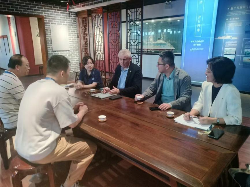 參觀后,貝雷先生與學(xué)院黨支部江文書記和翁國玲副院長會(huì)面,就考察情況進(jìn)行溝通。雙方交流了學(xué)院在國際郵輪乘務(wù)管理專業(yè)的教學(xué)理念、師資力量及發(fā)展規(guī)劃,同時(shí)貝雷先生分享了郵輪企業(yè)在船員培訓(xùn)方面的經(jīng)驗(yàn)和需求,對(duì)共建國際郵輪船員實(shí)訓(xùn)基地表達(dá)了積極意愿。