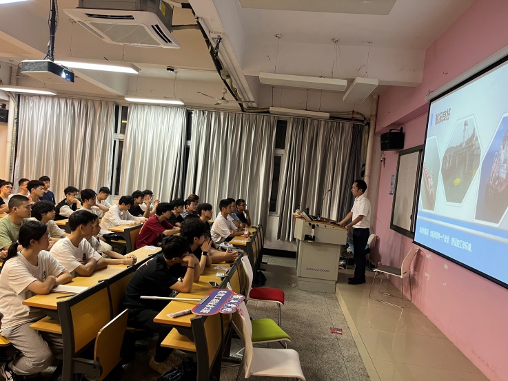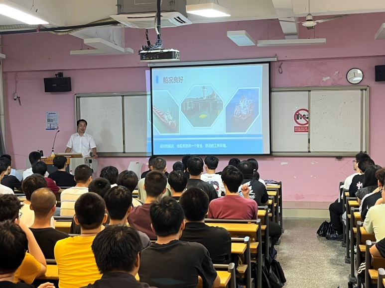 航海學(xué)院劉建安老師和外聘教師福建中平船務(wù)管理公司謝文勝輪機(jī)長,為新生們帶來了精彩的專業(yè)解讀。他們通過生動的案例、前沿的研究成果,深入淺出地講解了輪機(jī)工程技術(shù)專業(yè)的課程設(shè)置、學(xué)習(xí)方法、就業(yè)前景及行業(yè)發(fā)展趨勢,讓新同學(xué)們對即將深入學(xué)習(xí)的專業(yè)知識有了更加直觀和全面的認(rèn)識。特別是在互動環(huán)節(jié),同學(xué)們積極提問,老師們耐心解答,現(xiàn)場氛圍活躍,充滿了求知的渴望和探索的熱情。