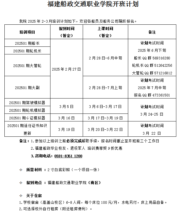 福建船政交通職業(yè)學(xué)院2-3月培訓(xùn)開班計劃