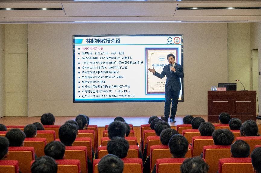 作為中國(guó)航??破沾笫?/span>,林超明先生首先介紹了中國(guó)航海學(xué)會(huì)、福建省航海學(xué)會(huì)以及福州海洋經(jīng)濟(jì)科創(chuàng)高地在航??破展ぷ髦械闹匾饔谩K麖?qiáng)調(diào),中國(guó)航海學(xué)會(huì)作為推動(dòng)航海知識(shí)普及的重要平臺(tái),致力于通過多種形式的科普活動(dòng)提升公眾對(duì)航海事業(yè)的認(rèn)知與興趣。福建省航海學(xué)會(huì)是福建省內(nèi)5A級(jí)學(xué)會(huì),是福建省內(nèi)推廣中國(guó)航??破瘴幕凝堫^學(xué)會(huì)。福州海洋經(jīng)濟(jì)科創(chuàng)高地是福州鼓樓踐行福州向海圖強(qiáng)戰(zhàn)略的海洋科創(chuàng)示范載體,通過創(chuàng)新創(chuàng)業(yè)、成果展示與轉(zhuǎn)化、科普研學(xué)等活動(dòng)進(jìn)一步推動(dòng)航海事業(yè)高質(zhì)量發(fā)展。當(dāng)下是我國(guó)航海事業(yè)的發(fā)展的重要契機(jī),希望在座的船政學(xué)子能學(xué)好專業(yè)知識(shí),為未來投身航海事業(yè)打好基礎(chǔ)。