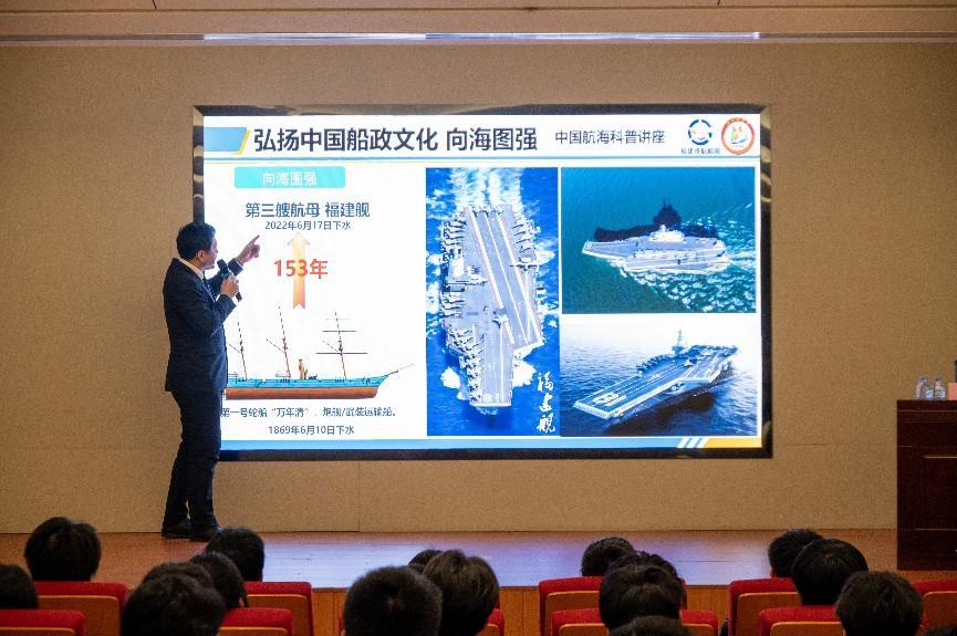 為弘揚(yáng)中國(guó)船政文化,增強(qiáng)青年學(xué)子的海洋意識(shí)與愛國(guó)情懷,2025年2月27日,中國(guó)航??破沾笫沽殖魃W臨我校航海學(xué)院,開展了一場(chǎng)主題為“弘揚(yáng)中國(guó)船政文化 向海圖強(qiáng)”的科普講座。