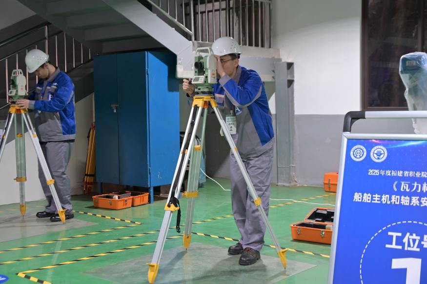 本次競賽由福建省教育廳、福建省人力資源和社會(huì)保障廳等八部門聯(lián)合主辦,賽事設(shè)置“船舶軸系理論中心線定位”和“小型柴油機(jī)拆裝與調(diào)試”兩大核心模塊,重點(diǎn)考察選手的精密測量、設(shè)備調(diào)試及工程實(shí)踐能力。通過真崗實(shí)境的操作比拼,充分展現(xiàn)了高職院校學(xué)子扎實(shí)的專業(yè)功底、精湛的工藝水平和新時(shí)代工匠精神。
