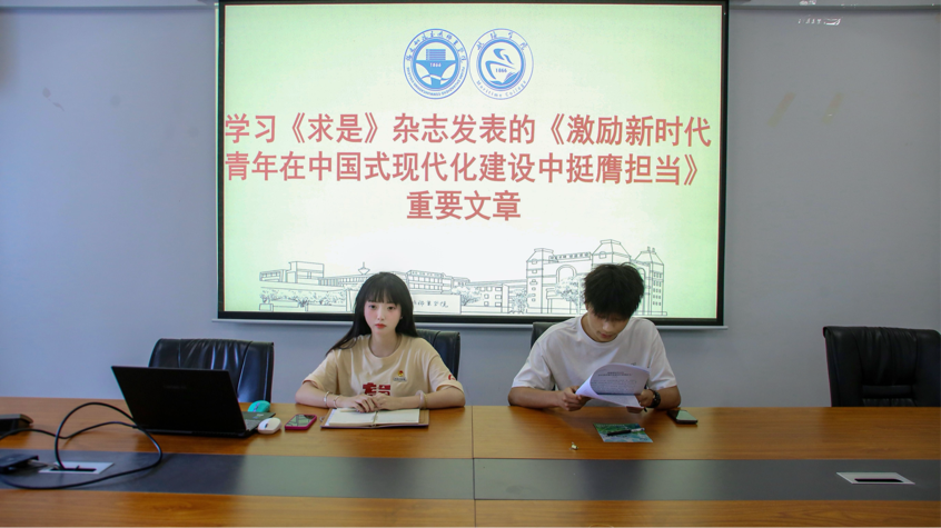 航海學院學生會主席團成員劉閩建,帶領全體骨干學習《求是》雜志發(fā)表的《激勵新時代青年在中國式現(xiàn)代化建設中挺膺擔當》重要文章。劉閩建結(jié)合自身經(jīng)歷,闡述了對開展學生會工作的感悟與見解,強調(diào)要以強化對同學的政治引領為核心,秉持全心全意為同學服務的準則,激勵同學們主動將個人理想與黨和人民的共同奮斗緊密相連,進而借助個人成長助力學院學生會組織實現(xiàn)高質(zhì)量發(fā)展。