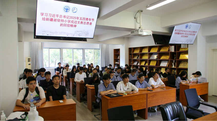 2025 年 5 月 9 日,航海學院學生會組織深入學習,習近平總書記五四青年節(jié)給新疆謝依特小學戍邊支教志愿者的回信精神以及《求是》雜志發(fā)表的《激勵新時代青年在中國式現(xiàn)代化建設中挺膺擔當》重要文章。從習近平總書記的殷切期望中汲取奮進力量,明確青春航向。