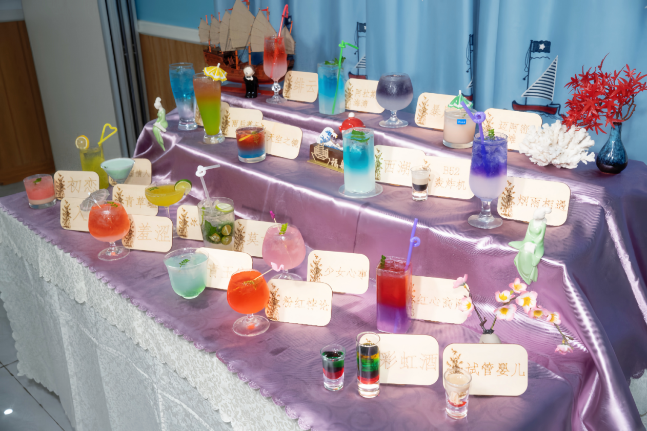 活動在精彩的花式調(diào)酒表演中拉開序幕。調(diào)酒師們身著制服,以嫻熟的技巧和富有節(jié)奏感的動作點(diǎn)燃了現(xiàn)場氣氛。隨后,學(xué)生們展示了從經(jīng)典雞尾酒到創(chuàng)意特調(diào)飲品的調(diào)制技藝?,F(xiàn)場調(diào)制的雞尾酒不僅造型獨(dú)特、色彩繽紛,更在口感上呈現(xiàn)出清爽、醇厚、果香等多樣化風(fēng)格,獲得嘉賓好評。