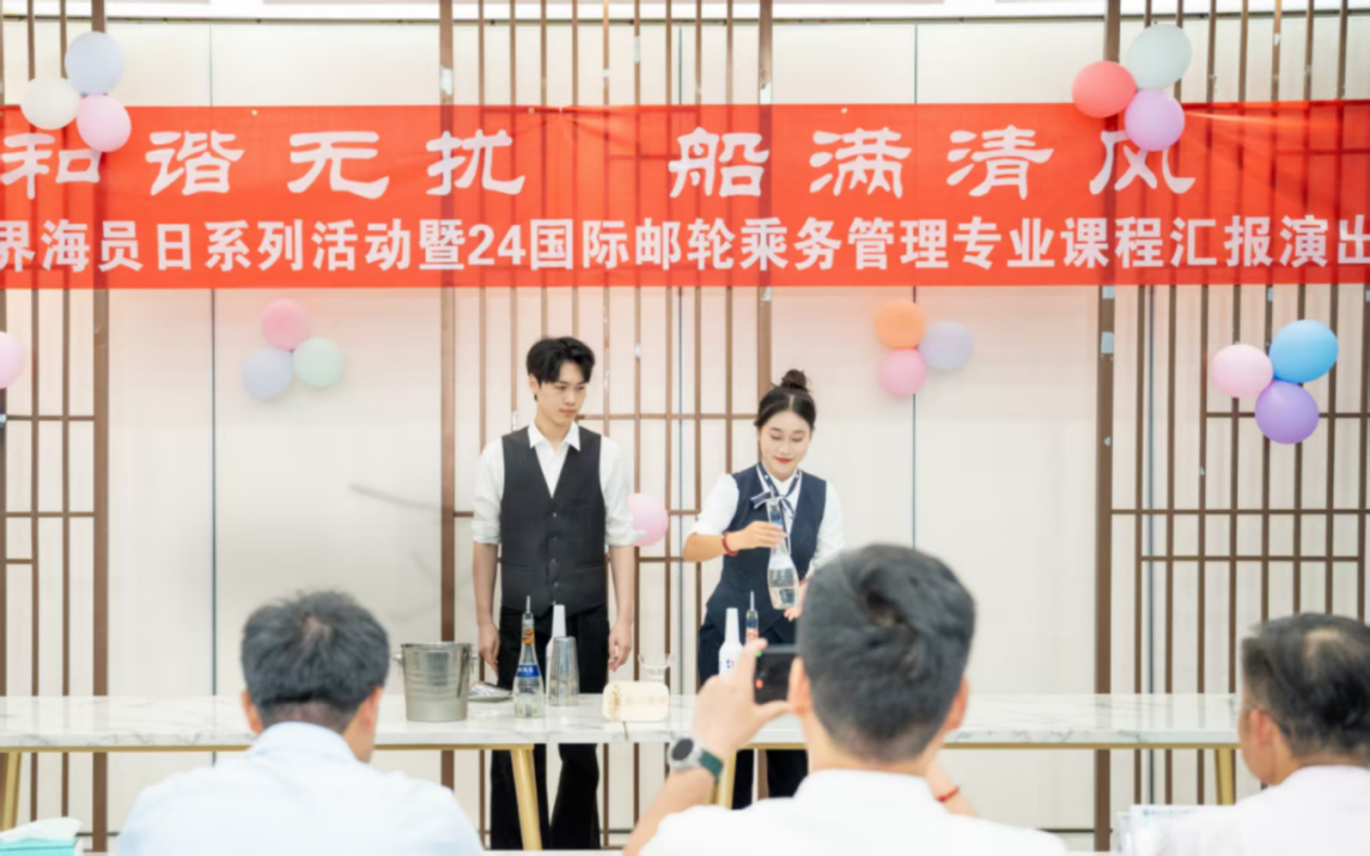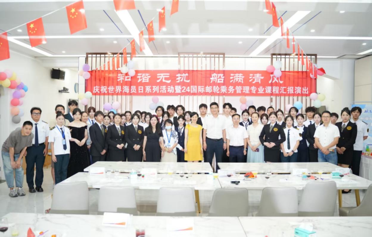 為慶祝世界海員日并檢驗教學(xué)成果,航海學(xué)院于6月18日在郵輪五高訓(xùn)練中心一期成功舉辦了“和諧無擾,船滿清風(fēng)”世界海員日系列活動暨24級國際郵輪乘務(wù)管理專業(yè)課程匯報演出。學(xué)院領(lǐng)導(dǎo)、行業(yè)專家及師生代表共同參與了活動。