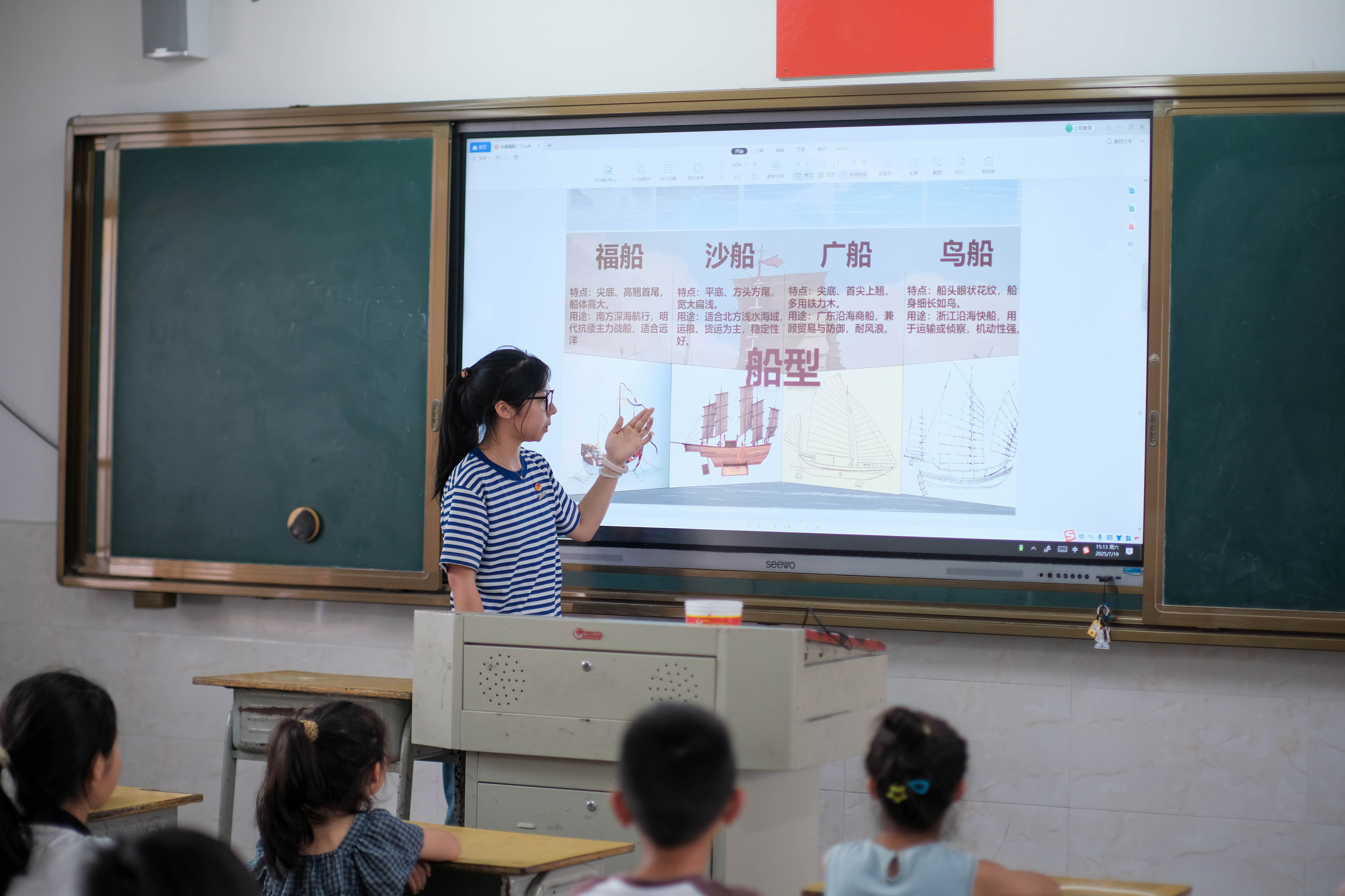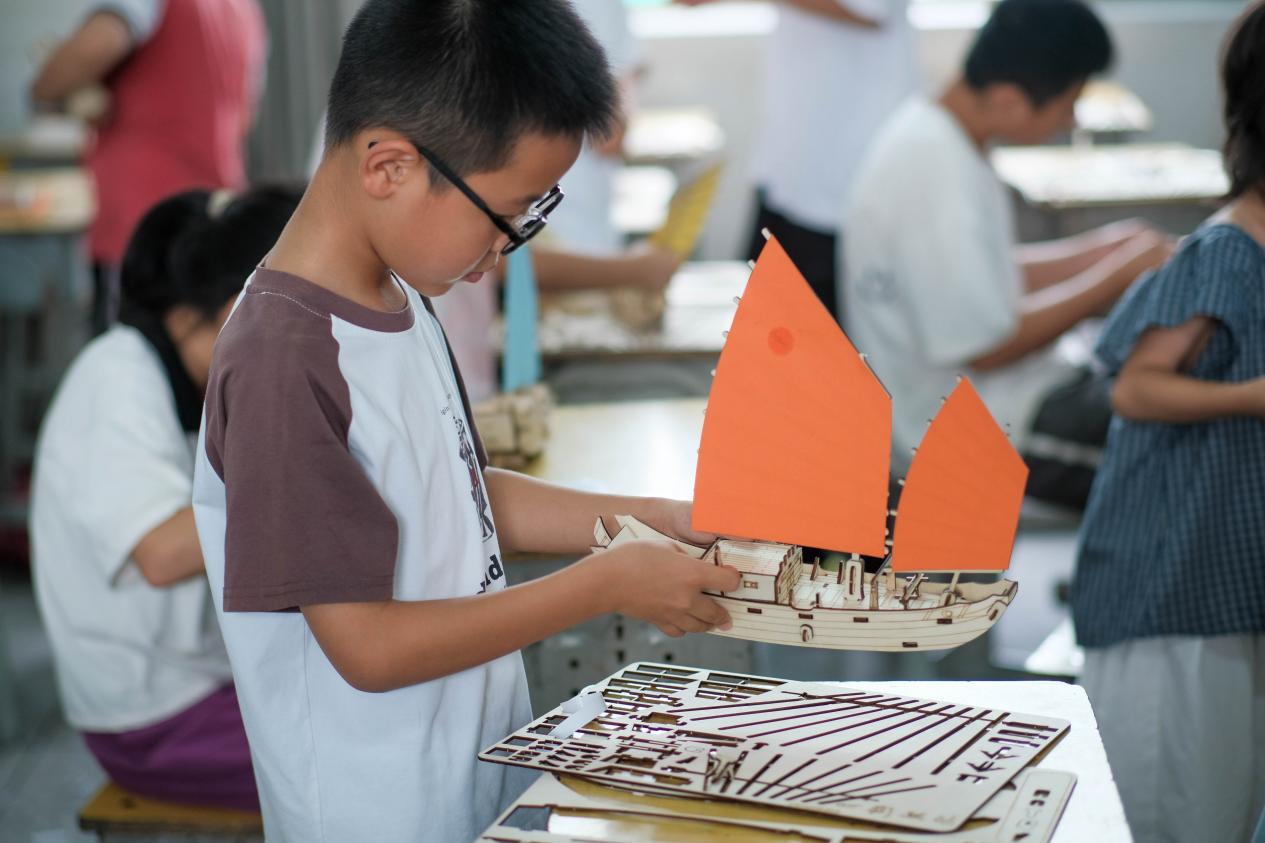 離別的時候,孩子們舉著船模揮手道別,這場山海相連的科普課,或許正如那艘福船模型,載著船舶知識的種子,在三十顆童心里悄然啟航。而實踐隊的隊員們知道,當這些孩子未來望向遠方時,或許會記得這個夏天,曾有一群航海學子,為他們打開過一扇通往海洋的窗。