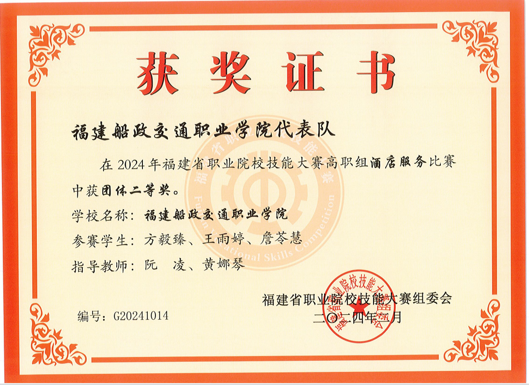 在福建省職業(yè)院校技能大賽中,蟬聯(lián)高職組酒店服務(wù)比賽、研學(xué)旅行比賽及酒水服務(wù)比賽等多個賽項獎項;