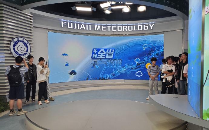 二是新開放氣象服務(wù)中心參觀。同學(xué)們了解到氣象不僅可以預(yù)報(bào)天氣,還可以極大地賦能農(nóng)業(yè)、能源開發(fā)等行業(yè)產(chǎn)業(yè);此外重點(diǎn)走進(jìn)中心內(nèi)的媒體直播室,直觀了解福建省氣象臺(tái)的氣象傳播工作。福建省氣象臺(tái)不僅成功運(yùn)營(yíng)“福建天氣”人氣媒體賬號(hào),還開發(fā)并有效運(yùn)營(yíng)了集實(shí)時(shí)天氣預(yù)報(bào)、科普等功能于一體的“知天氣”APP。氣象服務(wù)中心的參觀讓同學(xué)們對(duì)氣象工作的“服務(wù)端”有了更全面的認(rèn)知同時(shí)展現(xiàn)福建省氣象臺(tái)從內(nèi)容產(chǎn)出到技術(shù)開發(fā)氣象服務(wù)的專業(yè)性。此外,也體現(xiàn)了政府職能部門敢于跳出傳統(tǒng)氣象工作模式的局限,與時(shí)俱進(jìn)的理念主動(dòng)開拓創(chuàng)新路徑,推動(dòng)氣象預(yù)報(bào)以更鮮活、更貼近生活的形式走進(jìn)大眾視野,有效提升了氣象科普的傳播覆蓋面與實(shí)際效能。