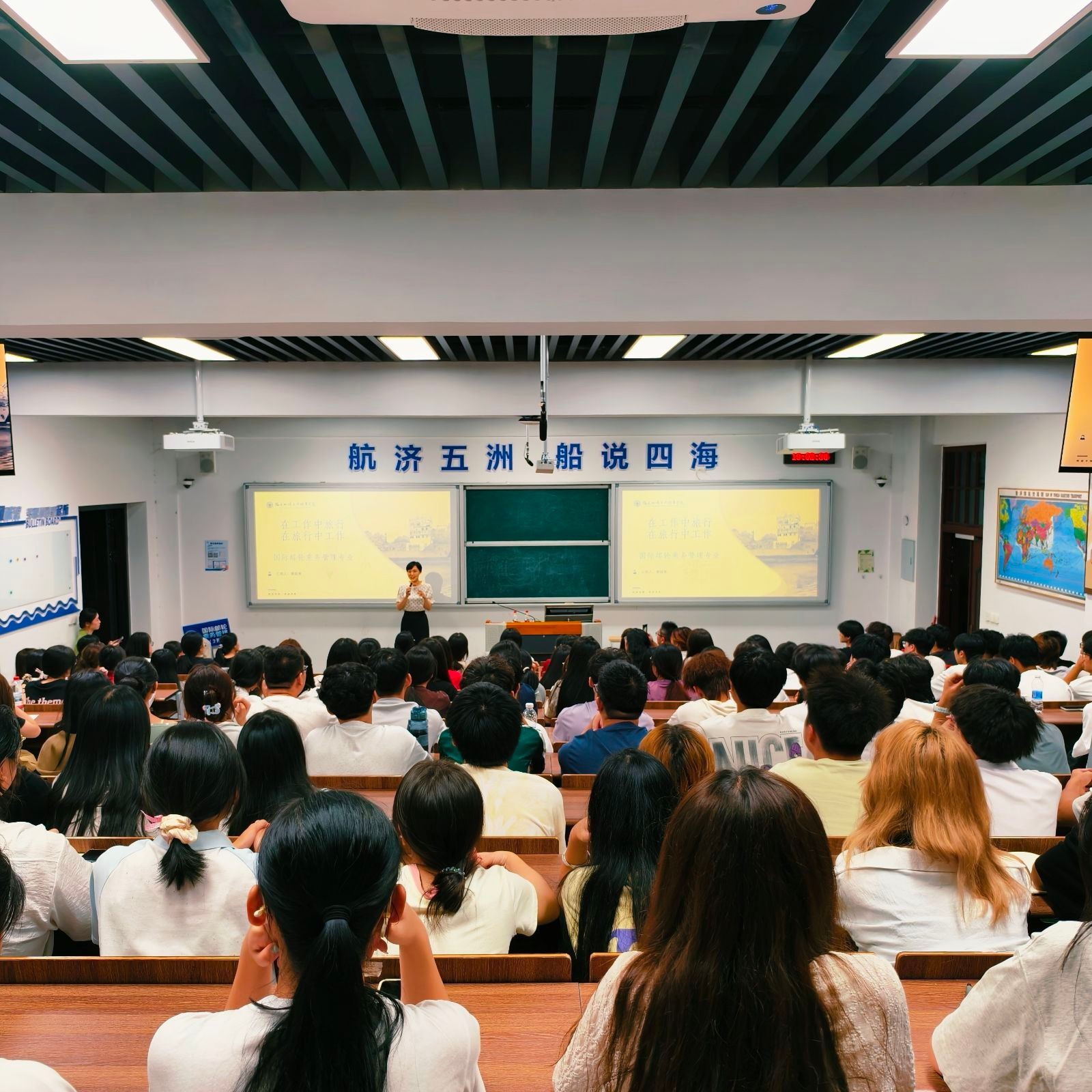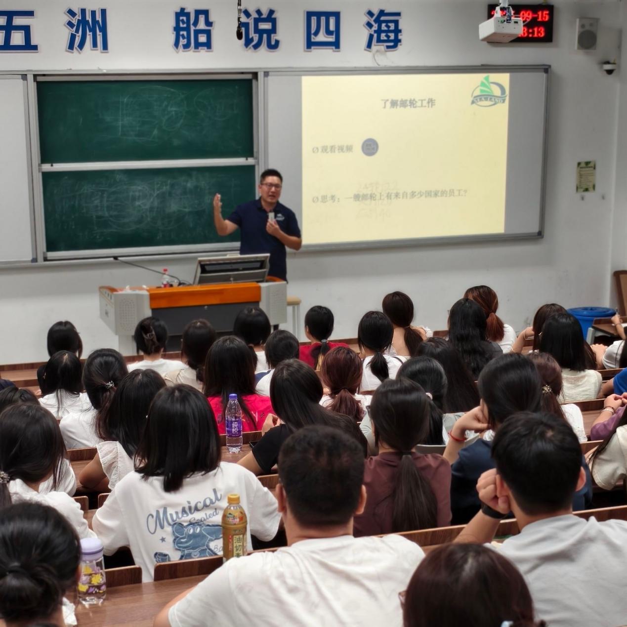 隨后,廈門海陸海事服務有限公司李樂天經理結合多年行業(yè)經驗,深入剖析了國際郵輪產業(yè)的發(fā)展趨勢與人才需求。他指出,隨著全球郵輪旅游市場的復蘇與擴張,具備國際化視野、跨文化溝通能力和扎實服務技能的乘務人才備受青睞。李經理以本校2015級優(yōu)秀畢業(yè)生陳麗娜(現(xiàn)任職于歌詩達郵輪)為例,鼓勵新生珍惜在校時光,夯實語言、禮儀與應急處理能力,積極考取國際認證證書,為未來登上世界知名郵輪公司奠定堅實基礎。
