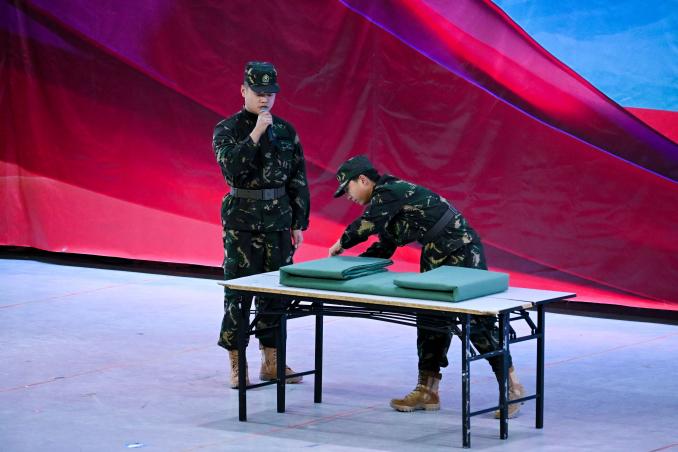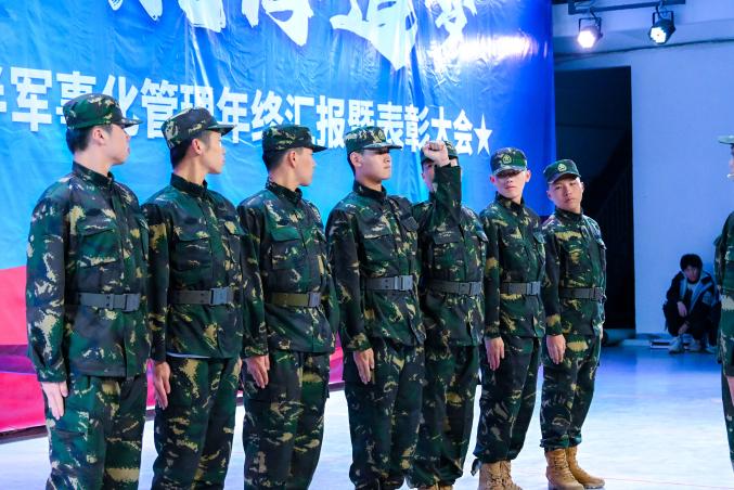 隨后的成果匯報展演環(huán)節(jié),直觀展現(xiàn)了半軍事化管理的扎實成效。隊列操《鐵血軍魂》中,身著統(tǒng)一迷彩的學(xué)子步伐鏗鏘、動作整齊,嘹亮口號響徹全場,盡顯令行禁止的優(yōu)良作風(fēng);內(nèi)務(wù)展示《疊被子》現(xiàn)場,展演同學(xué)手法嫻熟,鋪平、壓實、折疊、修形一氣呵成,棱角分明的“豆腐塊”,彰顯出半軍事化管理對細節(jié)的嚴格要求;半軍管情景劇,串聯(lián)起升旗儀式、晚熄燈、夜間訓(xùn)練、早列隊、主題班會等半軍事化管理日常場景,展現(xiàn)新生從抗拒半軍管的約束,到理解其背后的深意,再到傳承這份航海人的精神底色。詩朗誦《紀律鑄魂 青春礪劍—致半軍管歲月的赤誠與擔(dān)當(dāng)》,抒發(fā)了航海青年對規(guī)則的敬畏、對集體的熱愛;大合唱《如愿》將現(xiàn)場氛圍推向小高潮,歌聲里飽含著學(xué)子們接續(xù)奮斗、逐夢深藍的堅定信念。