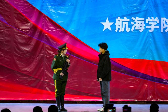 19時整,晚會正式拉開帷幕。主持人簡要介紹到場領(lǐng)導(dǎo)與嘉賓,點明“軍管鑄魂·航海追夢”的核心主題。“半軍事化管理標兵”代表率先登臺發(fā)言,他結(jié)合自身經(jīng)歷,分享了初入校園時的忐忑,以及在日復(fù)一日的隊列訓(xùn)練、內(nèi)務(wù)整理、集體生活中,逐漸磨礪意志、收獲成長的點滴感悟。