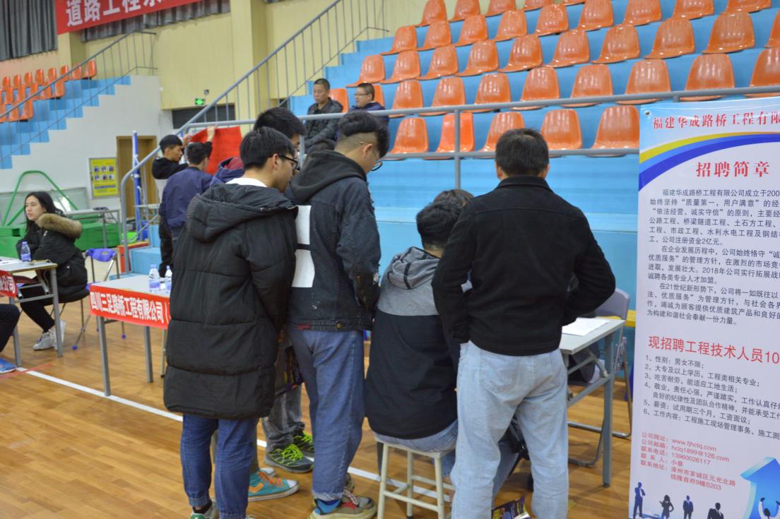 為切實(shí)做好我系畢業(yè)生就業(yè)工作,我系大力構(gòu)建畢業(yè)生與用人單位的交流平臺(tái),積極為用人單位輸送應(yīng)用型人才。2017年12月16日上午,在我院文體中心舉辦道路工程系2018屆畢業(yè)生專(zhuān)場(chǎng)招聘會(huì),共有50多家企業(yè)和單位參加。參加此次招聘會(huì)的領(lǐng)導(dǎo)有我院陳艷紅副院長(zhǎng)、王心金書(shū)記、陳若蘅總輔導(dǎo)員以及系部各專(zhuān)業(yè)教師。參加此次招聘會(huì)的企業(yè)主要以招聘土建工程類(lèi)等專(zhuān)業(yè)的應(yīng)屆畢業(yè)生為主。