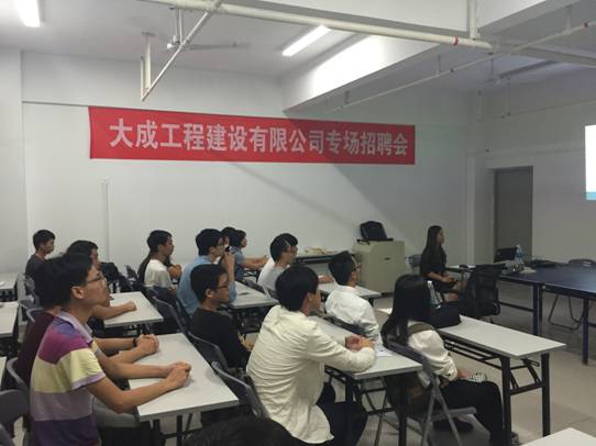 10月23日,道路工程系在圖書館10樓會議室召開了大成工程建設有限公司專場招聘會,為我系今年就業(yè)的畢業(yè)生找到理想的工作提供便利條件,同時滿足了企業(yè)日益旺盛的人才需求,搭建我系畢業(yè)生與用人單位的雙向交流平臺。