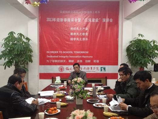 為扎實有效推進我院“三風(fēng)建設(shè)”工作,總結(jié)交流工作經(jīng)驗,1月25日下午, 道路工程系全體教師在8號樓二樓會議室召開2013年迎新春 “三風(fēng)建設(shè)”演講會。
