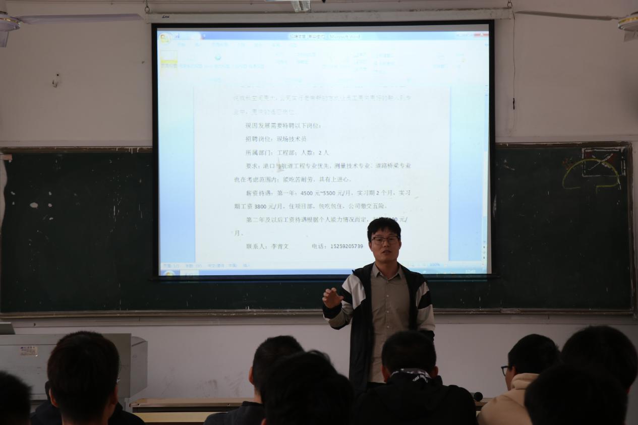為了讓同學(xué)們了解當(dāng)下就業(yè)市場所需要的人才,同時(shí)為我校應(yīng)屆畢業(yè)生提供更好的就業(yè)平臺,2019年11月22日,道路工程系在高蓋山校區(qū)3號樓205教室舉行福建省泓禹建設(shè)工程有限公司2020屆校園招聘會(huì)。